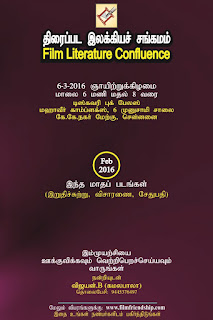 திரைப்பட இலக்கியச் சங்கமத்தின் அடுத்த நிகழ்வு 2016 பிப்ரவரி மாதம் வெளிவந்த படங்கள் பற்றி நடக்க இருக்கிறது.